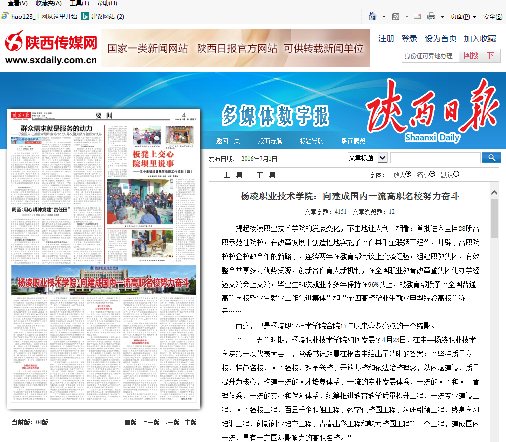 【陕西日报】杨凌职业技术学院:向建成国内一流高职名校努力奋斗