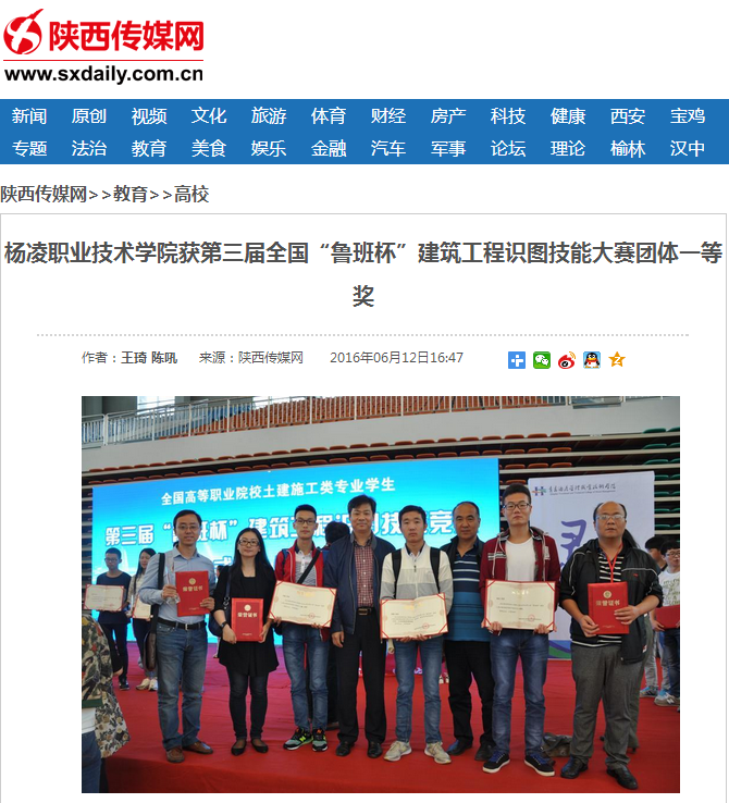 6月5日,第三届全国高等职业院校土建施工类专业学生“鲁班杯”建筑工程识图技能竞赛在青岛酒店管理职业技术学院落下帷幕。杨凌职业技术学院选手发挥稳定、表现出色,在全国184支参赛队伍中脱颖而出取得佳绩,荣获团体一等奖。该院刘斌、张权两名同学分别荣获个人一等奖,刘彩玲、周磊、马琳等三位老师获优秀指导教师奖。(王琦陈吼)