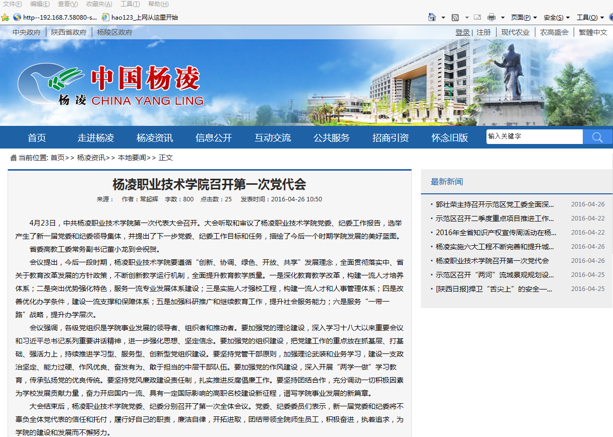 日,杨凌示范区网报道了我院召开第一次党代会情况。