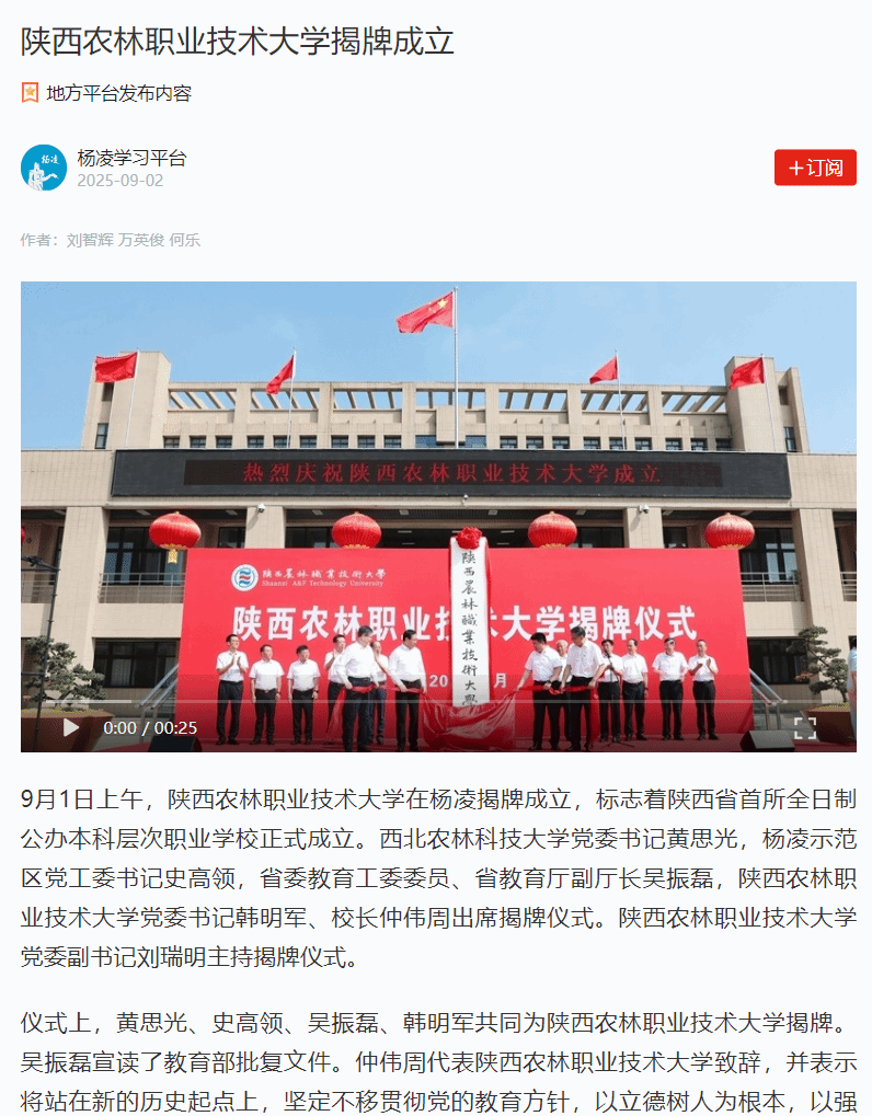 【学习强国】陕西农林职业技术大学揭牌成立