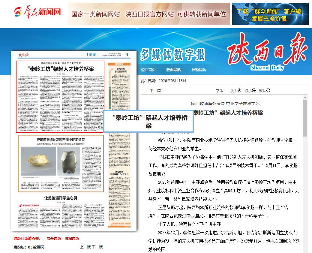【陕西日报】陕西教师海外授课 中亚学子来华学艺“秦岭工坊”架起人才培养桥梁