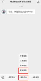 步骤一:关注“杨凌职业技术学院财务处”微信公众号进入“智能报账系统”