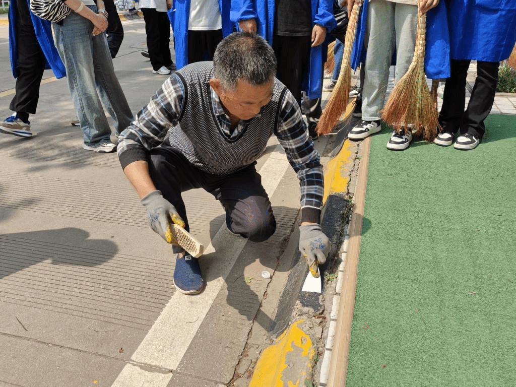 活动中,大家领取劳动工具清理路肩石杂、调配油漆浓稠度、涂刷油漆,最后进行打磨修整,积极性整个活动按照人员、班级、路段分区域有序推进,大家相互协作、互帮互助,通过双手美化了校园,在劳动中感受到快乐。