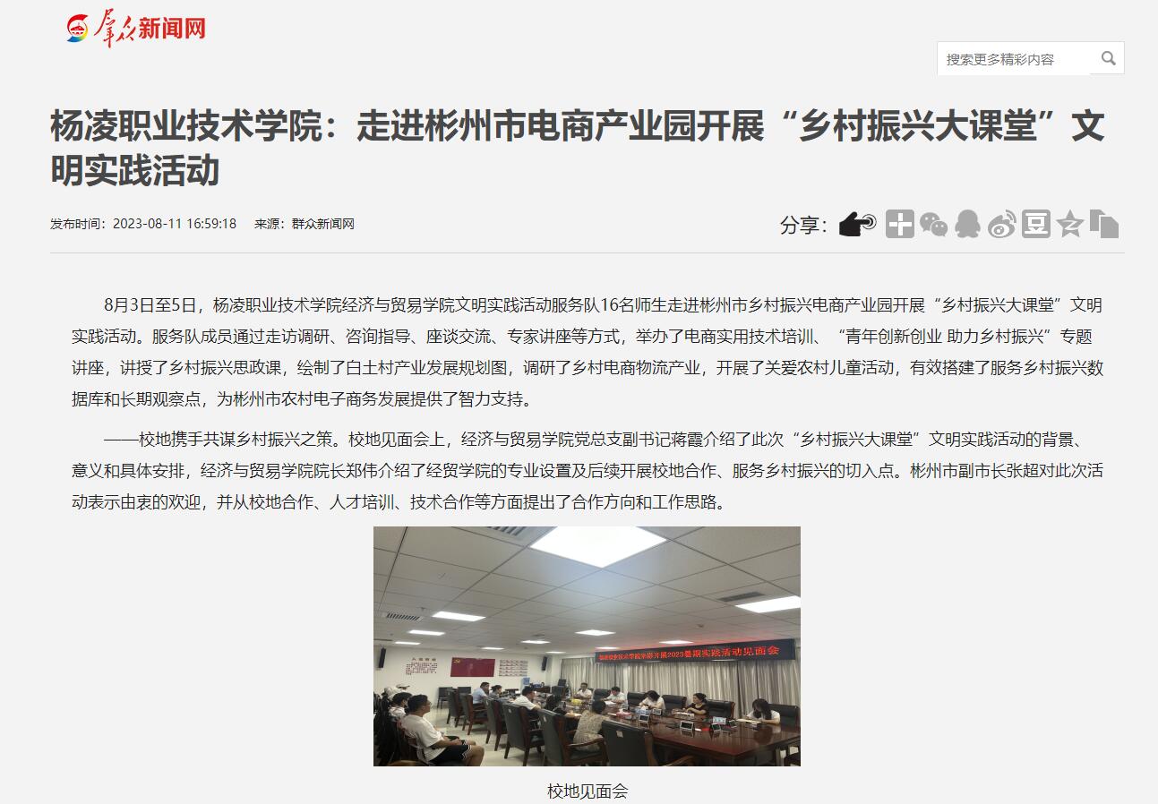 【群众新闻网】杨凌职业技术学院:走进彬州市电商产业园开展“乡村振兴大课堂”文明实践活动