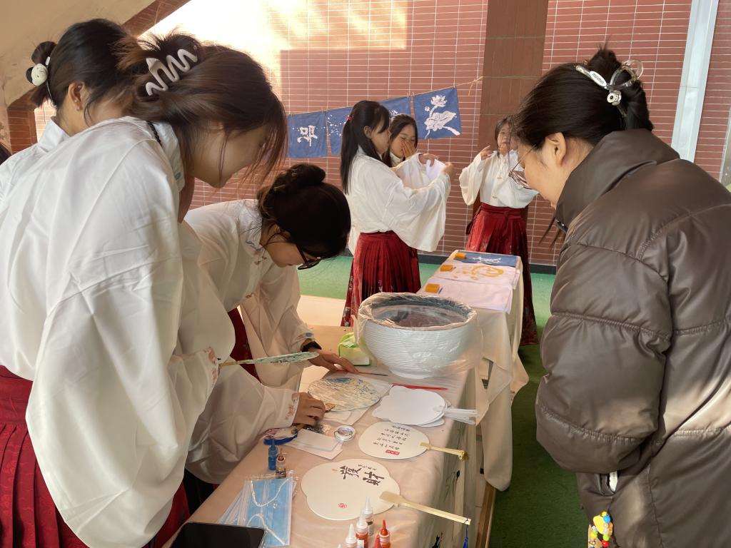 现场设置了剪纸体验、漆扇制作和蜡染展示等,吸引了众多师生前来参与。此次非遗文化体验活动丰富了师生的课余生活,进一步增强了大家对传统文化的保护意识,极大提升了学生对传统文化的认知和传承力度,为校庆增添了浓厚的文化氛围和独特的艺术魅力。